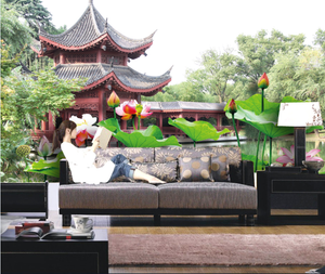 Papel Pintado Mural De Vellon Estanque Loto De Pabellon 2 Paisaje Fondo Pantalla Ebay